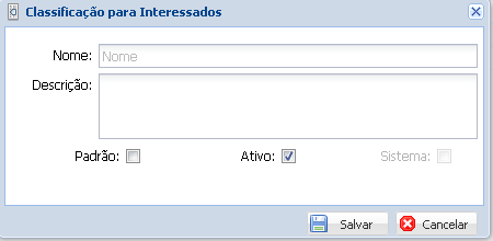 Logo mais a baixo o usuário define essa classificação como Padrão e como Ativo.