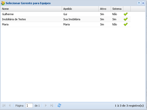 Esta tela permite cadastrar as equipes de corretagem, definindo seus gerentes e os corretores participantes das equipes.