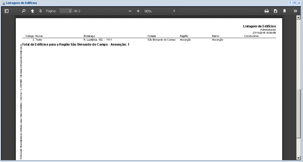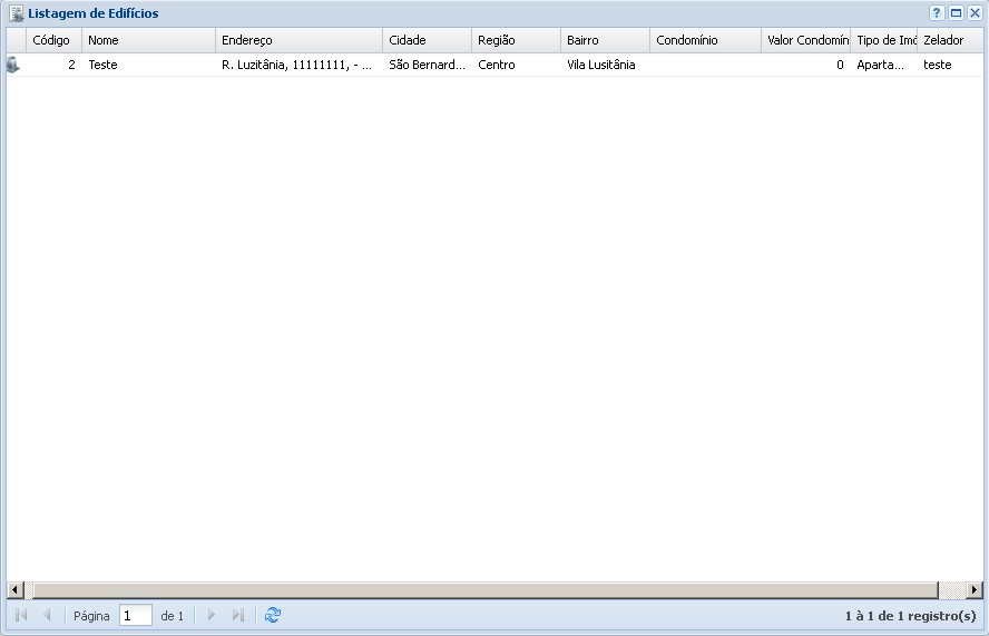 Ao selecionar a opção “Vizualizar“, o sistema puxará uma lista, com todos os edifícios que encontram-se dentro do padrão escolhido nos filtros. A listagem irá aparecer juntamente com as informações básicas do edifício.