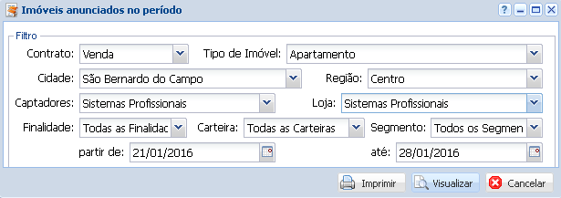 Por fim é necessário escolher o período em que deseja-se fazer a listagem dos imóveis.
