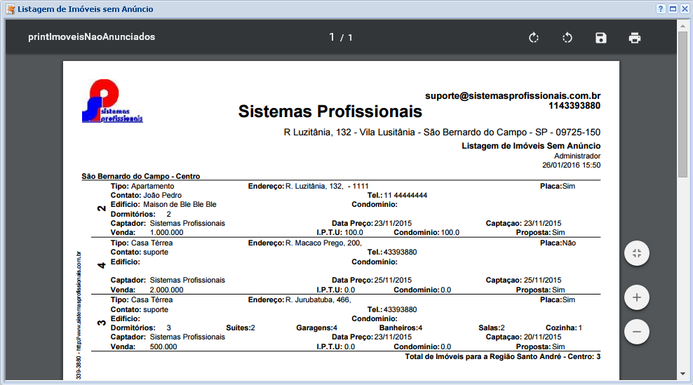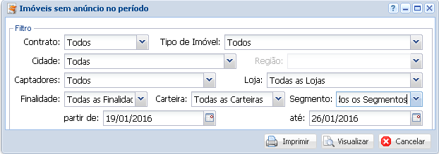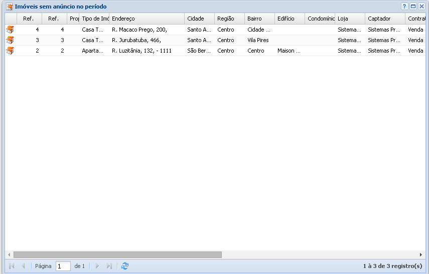 Este relatório nos permite visualizar os imóveis que foram cadastrados no sistema e não tiveram anúncios cadastrados no período indicado.