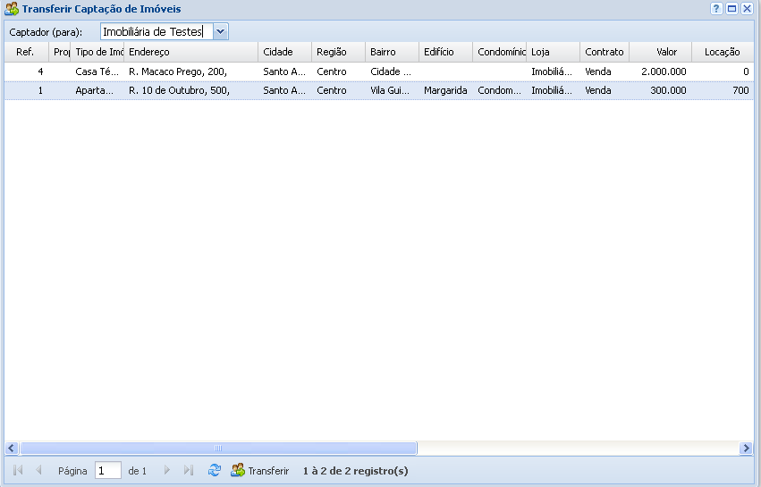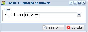 Basta selecionar o Captador que irá transferir o imóvel para outro, e clique no botão Transferir.