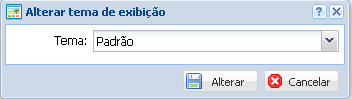 Nesta tela o usuário pode modificar o tema do sistema, tendo como opções Padrão, Cinza, Azul e Acessibilidade. Para modificar basta selecionar o tema desejado e clicar em Alterar.