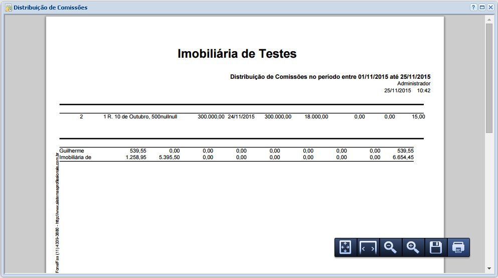 Imprimir: Este botão gera o relatório em um arquivo PDF, como mostra a imagem a seguir. A partir do PDF, podemos imprimir ou salvar este arquivo, clicando em um dos botões no canto inferior direito do relatório.