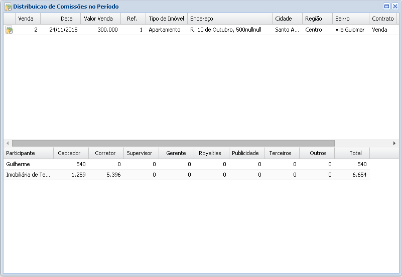 Distribuição de Comissões no Período: Vendas > Distribuição de Comissões no Período