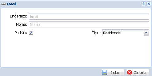 Em Email insira o Endereço, Nome, Padrão e Tipo. Para salvar este e-mail clique em Incluir.