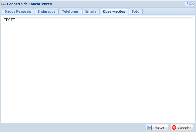 Na aba Observações há um campo para que o usuário digite uma observação sobre este concorrente.