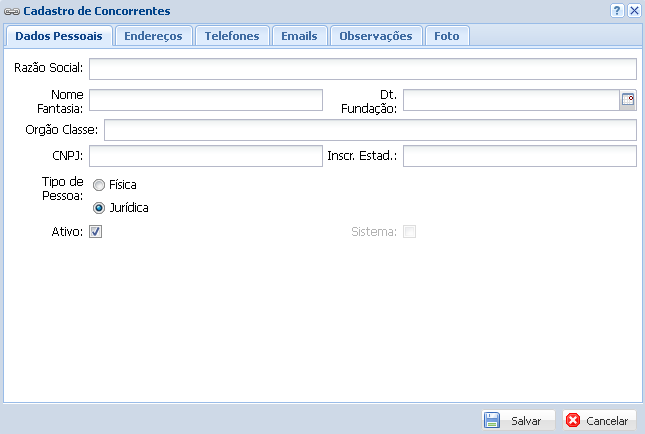 Para finalizar o cadastro do concorrente clique no botão Salvar.