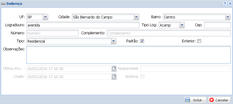 Para salvar este endereço clique em Incluir.